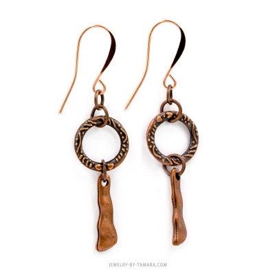 Textured circle and drop copper earrings