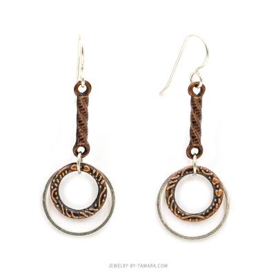 Textured and plain circle copper earrings