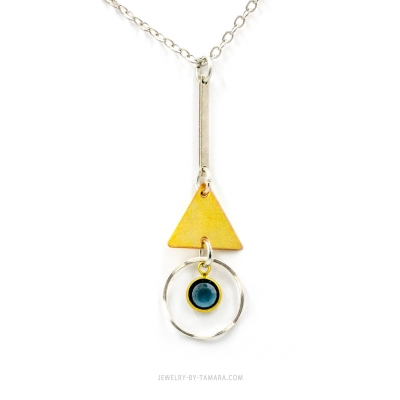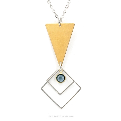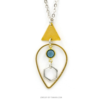 Blue Swarovski crystals, brass teardrop and silver circle earrings Add to Cart