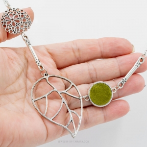 Nature-inspired hollow leaf and olive leather necklace