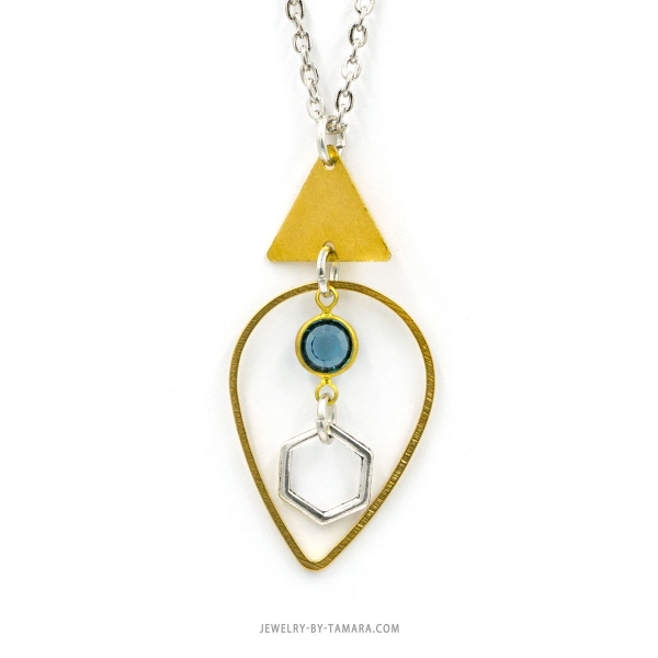 Antique silver and raw brass with beautiful blue Swarovski crystal