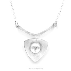 Dome-shaped brushed sterling silver triangle with a dome-shaped disc inside